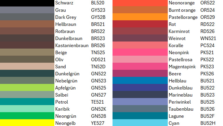 Farbkarte Biothane